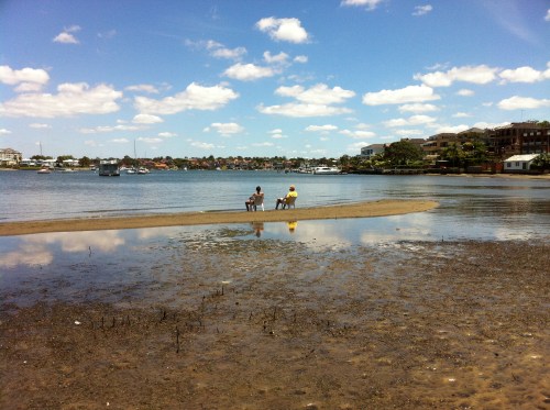 With the tide out on Hen and Chicken Bay, this sand bank was irresistible for these sun seekers.
