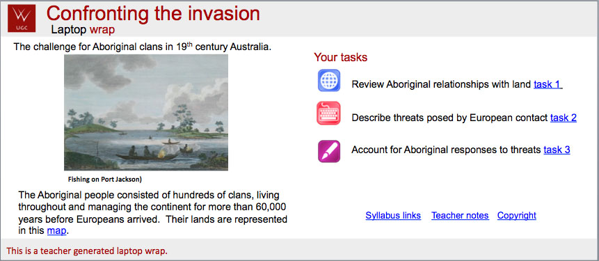 This past winter has been a time of reading, research and digital construction for me. After developing a research unit on the Sioux’s survival, last year , I turned my attention to building a short unit on Aboriginal survival. I wanted this to be a learning project that avoided the generic introduction, typical of many school text books, that imposed a homogeneity to the life of Aboriginal and Torres Strait Islanders (ATSI) history before contact. It was also necessary to ensure that the sections dealing with Contact and Post Contact history were constructed so that students were encouraged to draw on the rich digital resources that are now becoming available. I built both the Sioux and the ATSI units learning units using a template supplied by the NSW Teaching and Learning Exchange (TALE) managed by the NSW Curriculum and Learning Innovation Centre