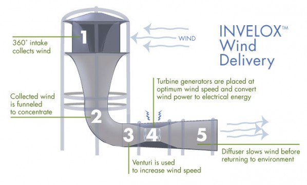 - delivered to the turbine/generators to convert the accelerated wind to electrical power