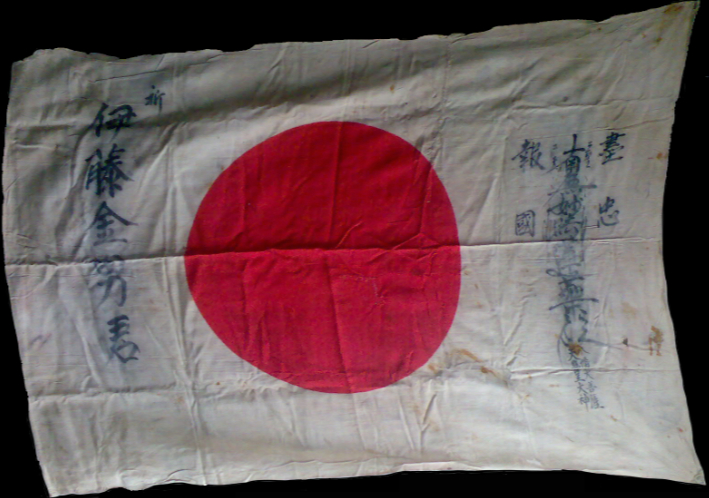 Last year I wanted to translate the Japanese characters on this flag from World War II. I had the flag briefly and made a point of photographing it.