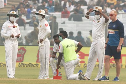 The Times of India reported that Pollution stopped play on Sunday in the third Test between India and Sri Lanka. Australia’s ABC reported extensively on the problem as well.