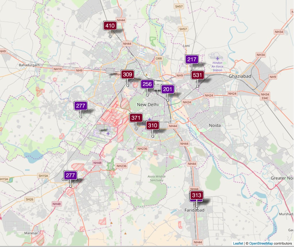Using AQICN data it is possible to look at the present situation in New Delhi.