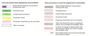 Map key showing changes in land use and forest exploitation proposed. The shaded areas show the proposed change.