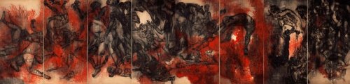 Working in the morgue at Sanglah Hospital after the Bali Bombings was a traumatic experience. Conditions in the morgue were appalling. In one sense I was relieved that I had encountered death and images of death before, but nothing on this scale. Standing amidst the stench of charred and uncovered bodies my mind ran back to 1958 the year my parents took me to see the Hiroshima Panels, the closest thing I had ever seen to this. Searching for an abstraction, a distraction that might offer some relief from this hell, I wondered. Was one purpose of art, to map the edges of human experience, to provide an emotional or a spiritual map? I was grateful that the Maruki’s, confronting their own tragedy, dealing with their own trauma, had allowed me to come to the place before, to remotely sense it, to be forewarned.