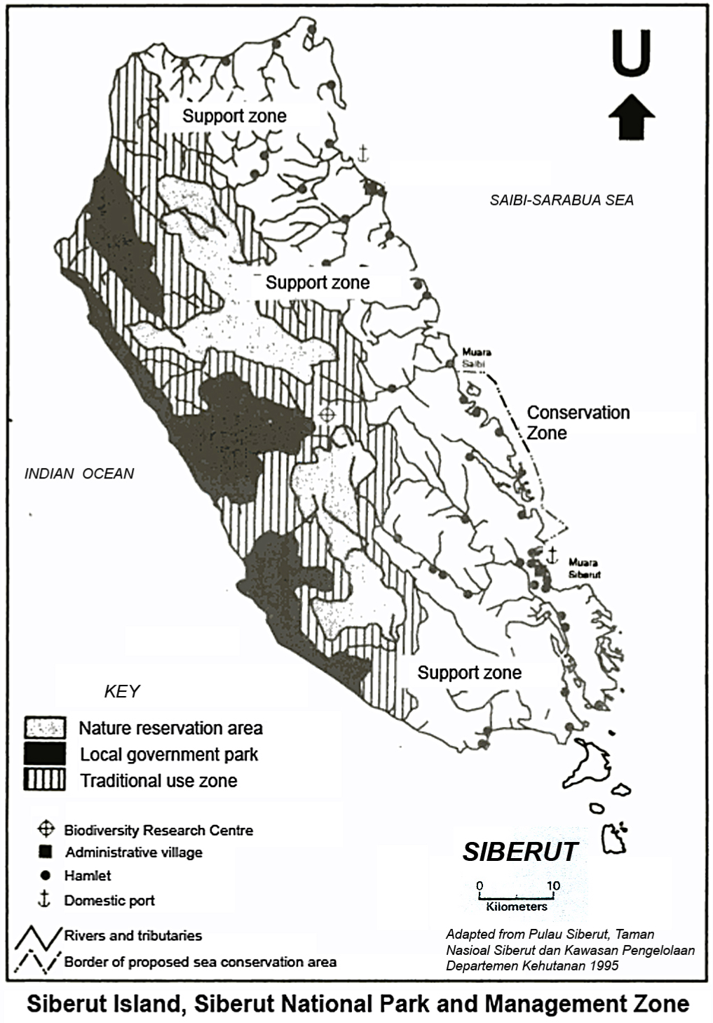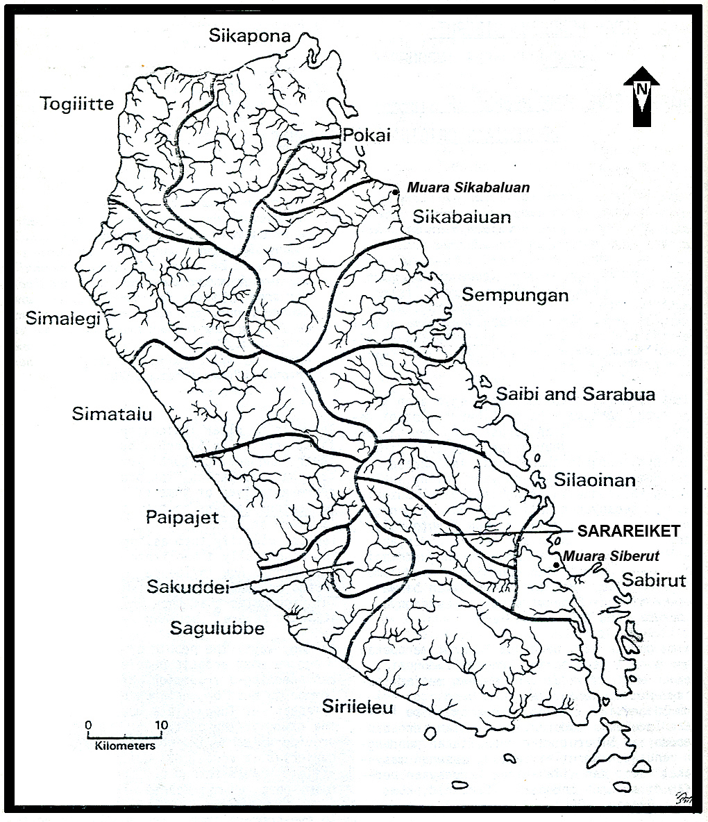 Accustomed as I was to the wide Mahakam River, journeying up the Rereiket River from Muara Siberut to Rokdok village was more like travelling up a mining sluice. It was a raging turbid torrent of sediments and tree trunks fuelled by a constant downpour. Sitting in the centre of the motorised canoe, I was amazed at the debris that came tumbling past me. Beneath my broad brimmed hat and plastic cape, I roughed out notes on the surroundings whenever the downpour eased enough for me to peek out.