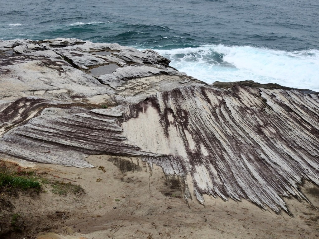 The coastline is mostly sandstone formed about 220 million years ago during the Triassic period. Later, about 200 million years ago during the Jurassic period, it was uplifted.