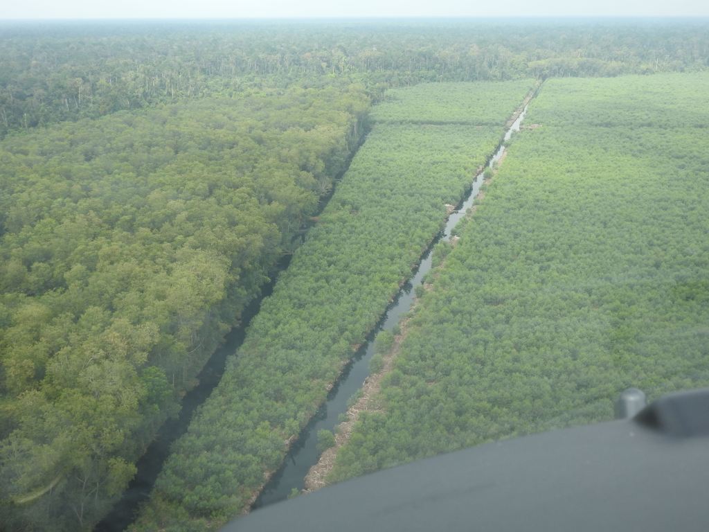 My first visit was to the holdings of Asian pulp and paper bracket AP] a company that had faced legal sanctions in Singapore because of its association with the peatland smoke. We travelled to Pekan Baru by air and were greeted by representatives of AAP. On the following day we took a helicopter flight over the extensive AAP holdings.