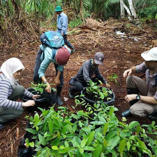 Sungai Tohor is at 0.88041, 102.78757 and in the surrounding land there is a tree planting project. The community collects seeds from remnant forest, germinates them, grows them in nursery plots and then plants them out. This is all done without funds.
