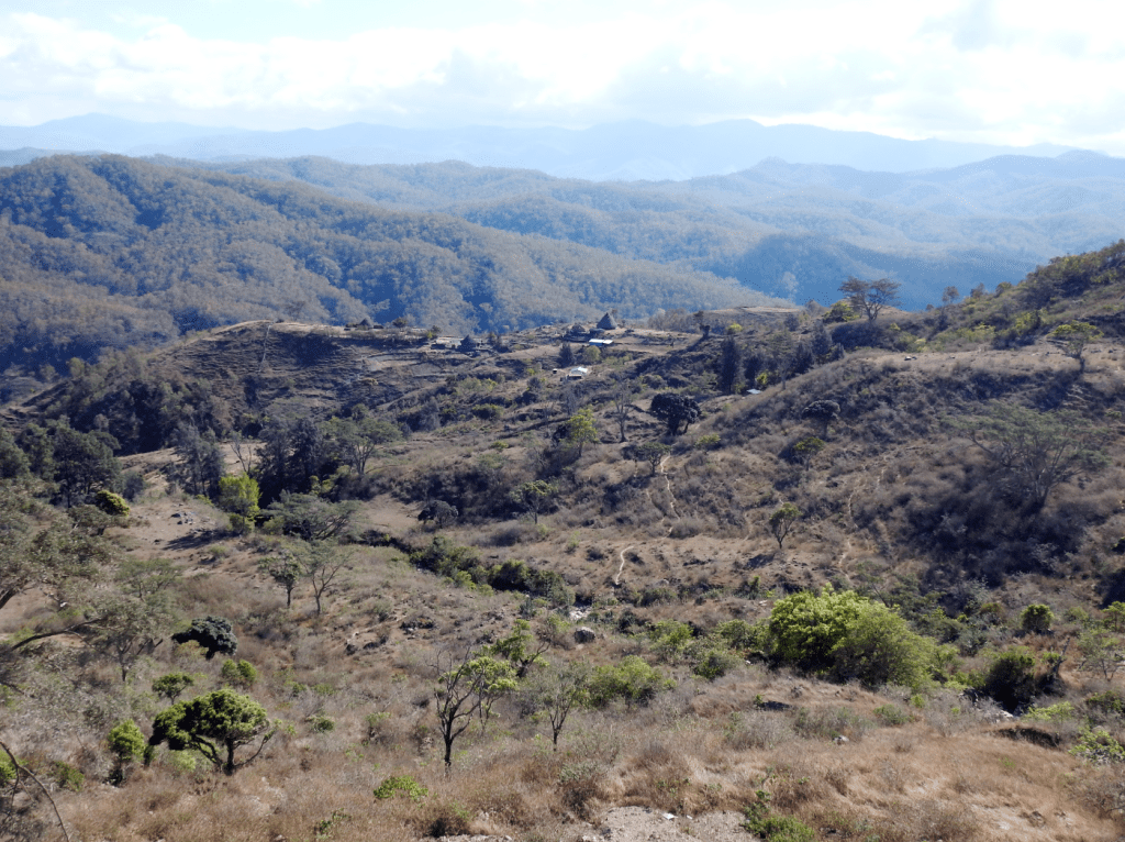 Weeks earlier I went to Jakarta Dois with colleagues, from the T4T program, I knew the route. An easy walk, it first wound through Ainaro’s outskirts, traversing ephemeral watercourses and hills, before entering a gradual descent between the Maumali and Sarai Rivers. Gun-barrel straight in parts, it was lined by a simple scattered house, stands of young teak trees, corn gardens, and patches of green leafy vegetables.
