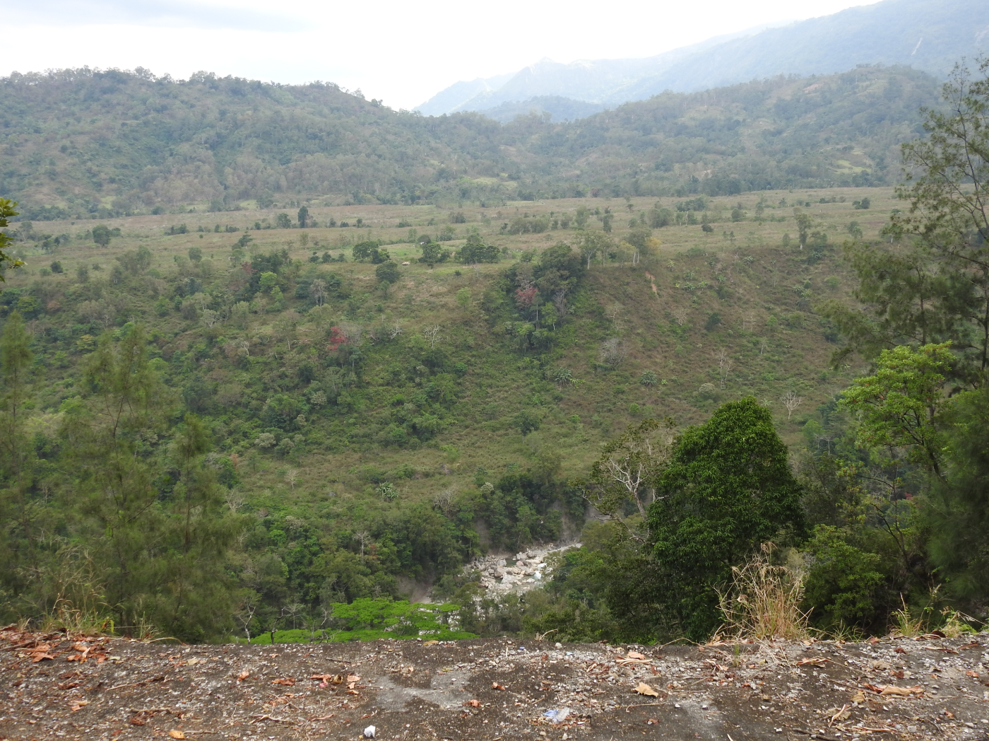 Jakarta Two is on a narrow ridge line. To its west cliffs running perilously close to the road drop 30 to 40 metres into the Sarai River valley. Local geology is complex, an unstable mix, clay rich marine sediments, a melange known as Bonbonaro scaly shales from the Miocene, sequentially overlain by deposits of Ainaro Gravels, relic river gravels from the Pliocene and Pleistocene eras. Uplift and tilting have jumbled the geology into an unstable mix of strata. Landslides and vertical cliff line retreat are common. On my first visit I was shocked at the undercutting eating into the road, pinned with steel supports in places to slow the erosion. It was far too dangerous to risk standing on the edge of the cliff.