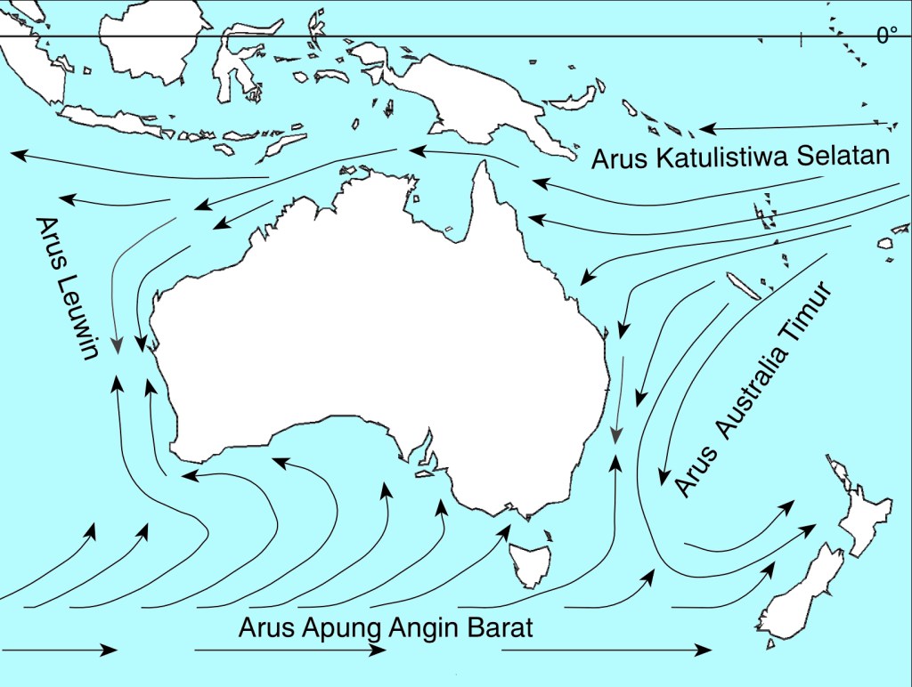 Di samudera sekitar Australia terdapat beberapa arus yang penting. Arus-arus ini dapat dilihat dalam Gambar 2.2.