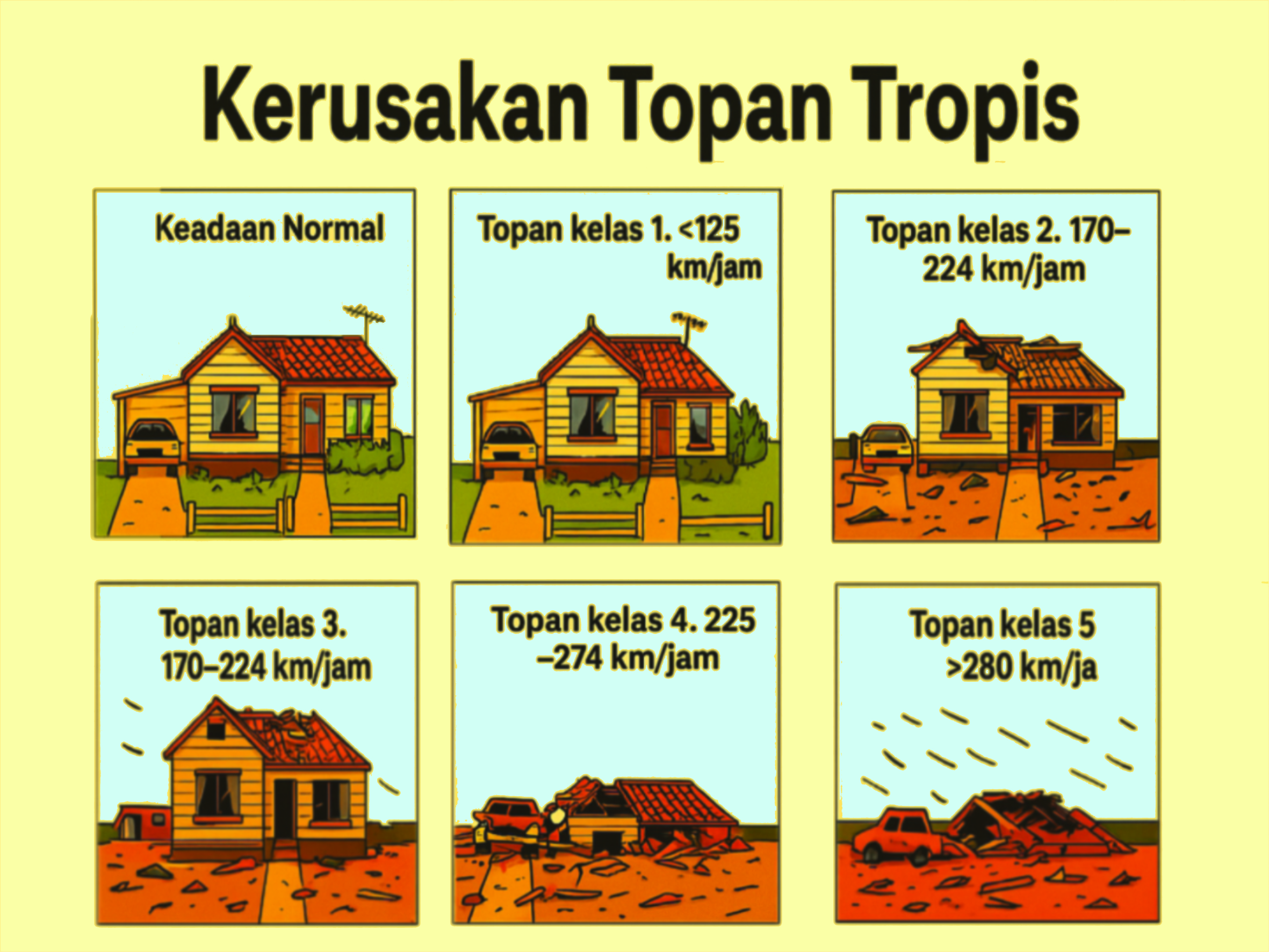 Dalam Gambar 2.11 adalah contoh rumah kayu. Akibat khas topan tropis tampak dalam gambar-gambar rumah ini.
