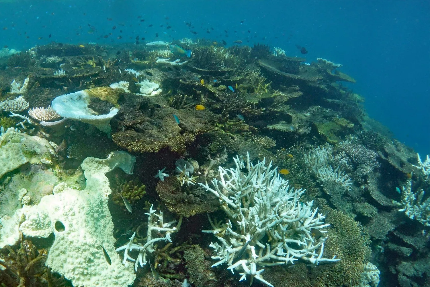 - Great Barrier Reef menghadapi gelombang panas laut yang meningkat dan lebih tahan lama, yang menyebabkan pemutihan karang yang lebih sering dan parah.