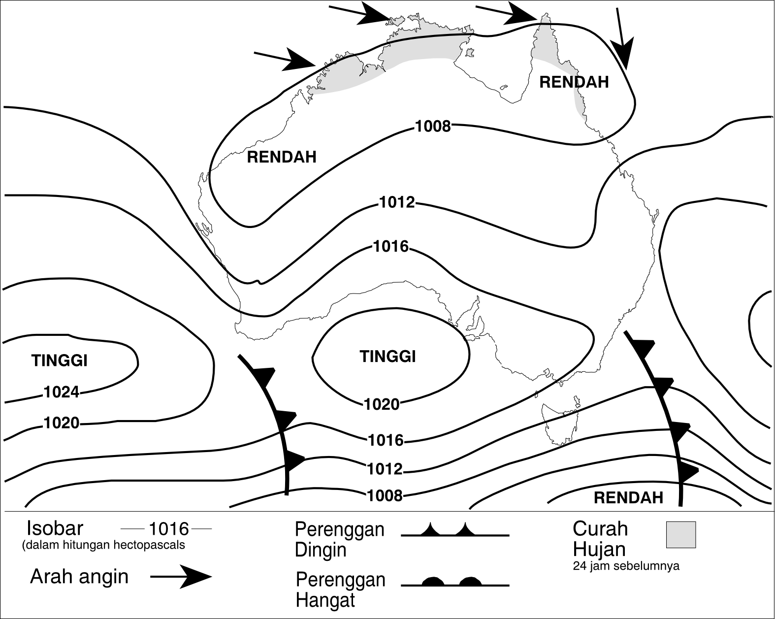 Bulan Januari merupakan pertengahan musim panas di Australia. Matahari tepat berada di atas Australia bagian utara sehingga benua tersebut menjadi lebih panas. Selama musim panas ini, ada sistem tekanan rendah yang bergerak di atas Australia bagian utara yang berasal dari Samudera India dan Samudera Pasifik. Manakala sistem tekanan rendah ini melintasi lautan yang hangat, sistem tekanan tersebut menjadi lembab sehingga meniupkan udara tropis yang panas ke arah benua. Hal ini menyebabkan terbentuknya awan dan hujan. Kejadian ini membawa hujan ke daerah-daerah tropis dan subtropis di Australia bagian utara di musim panas. Hal ini digambarkan dalam Gambar 2.6a.